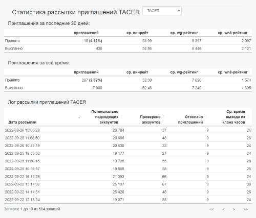 Пример статистики разосланных приглашений: